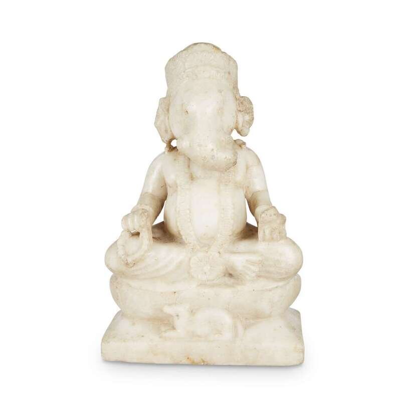 An Indian carved white marble figure of Ganesha seated Probably 18th/19th century