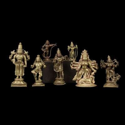 Group of seven Indian copper alloy figures of deities 19th century and earlier