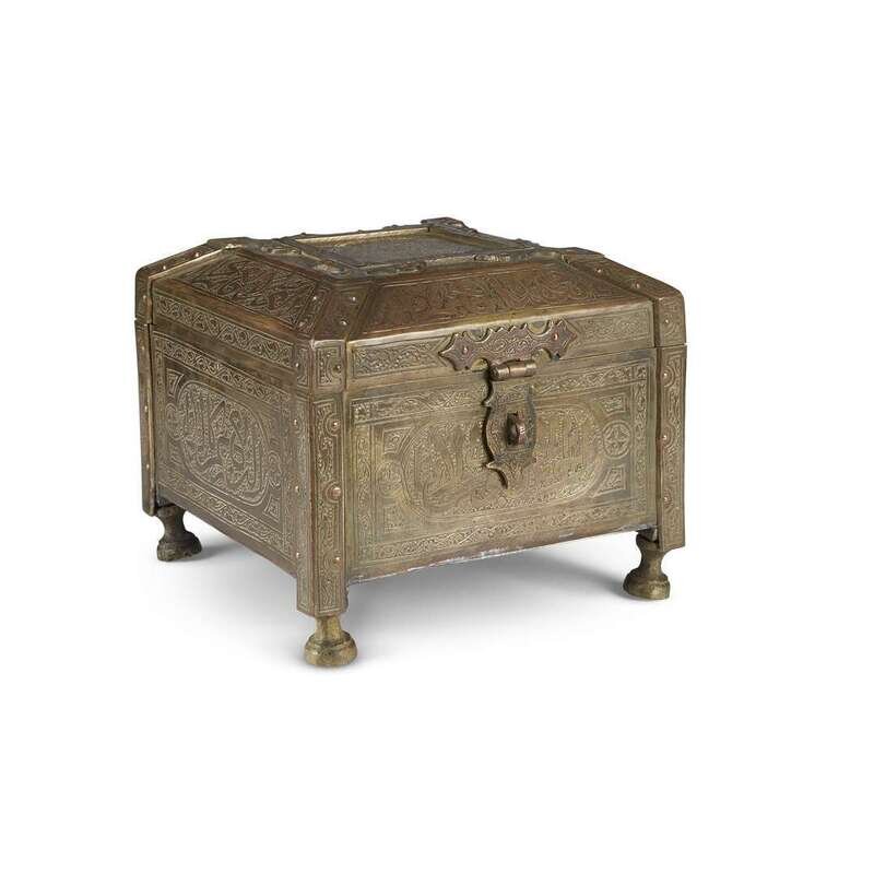 A Mamluk revival engraved brass casket