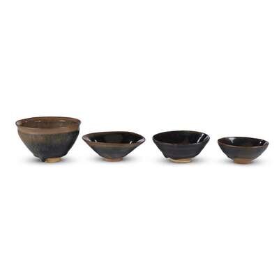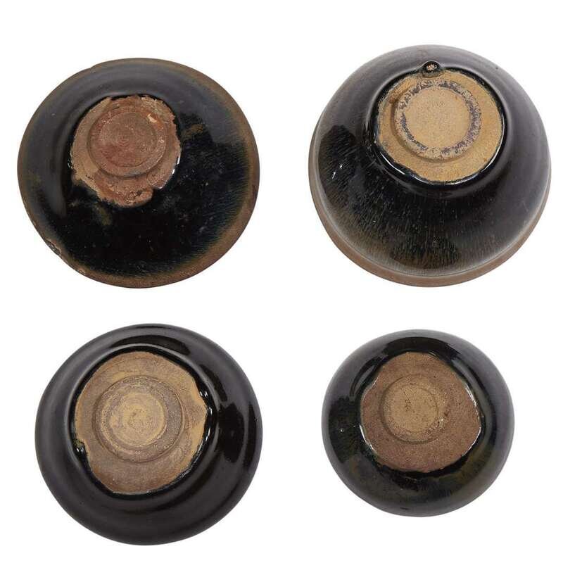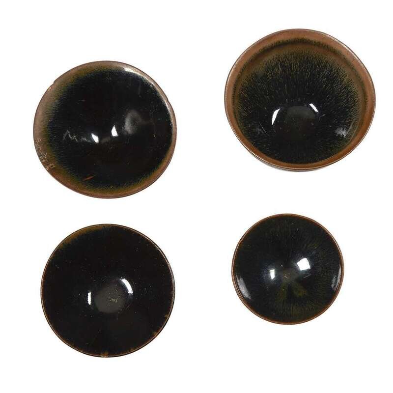 Of various flared and rounded forms, iron-brown and black glazes, the largest with "hares-fur" patterning.