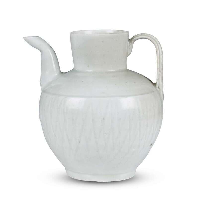 A Chinese white-glazed ewer and cover five dynasties/northern song