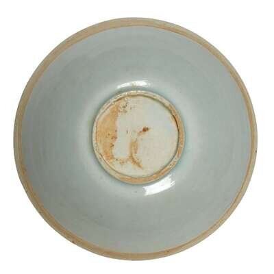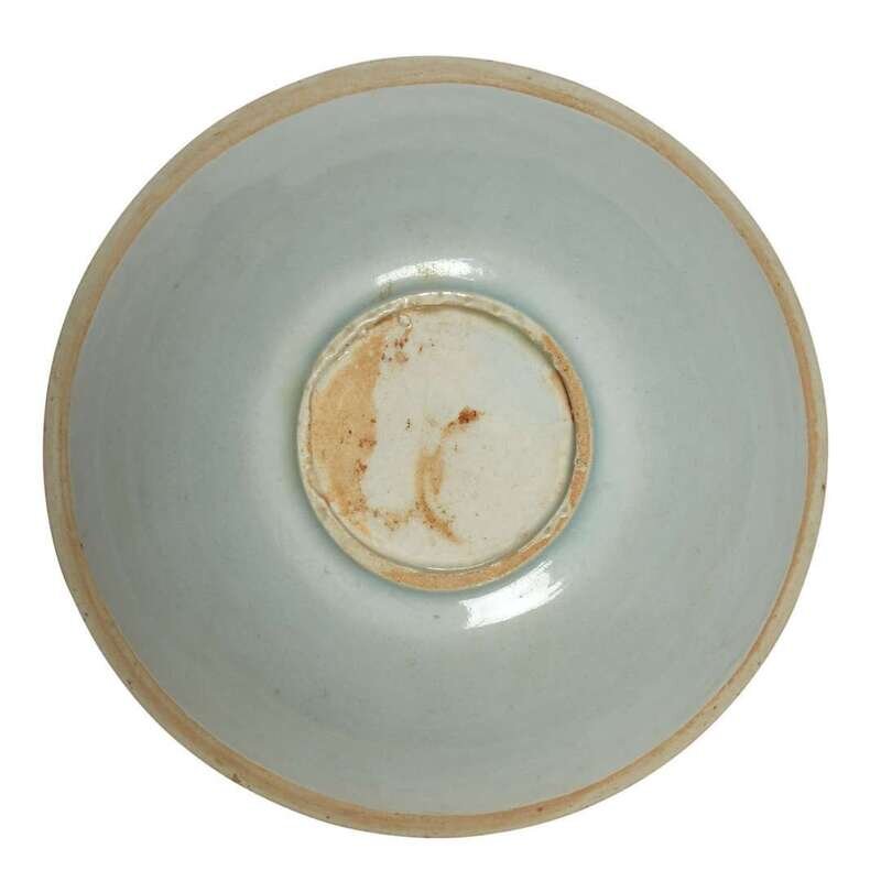 The interior of the bowl modeled in the form of a six-petaled flower, the well with a pair of incised fish.