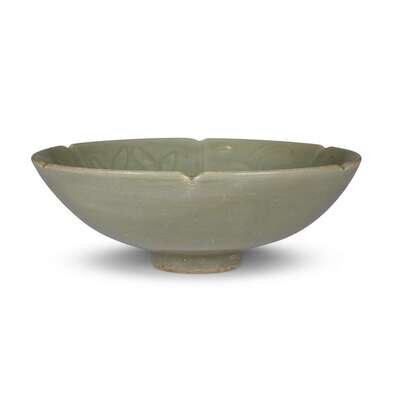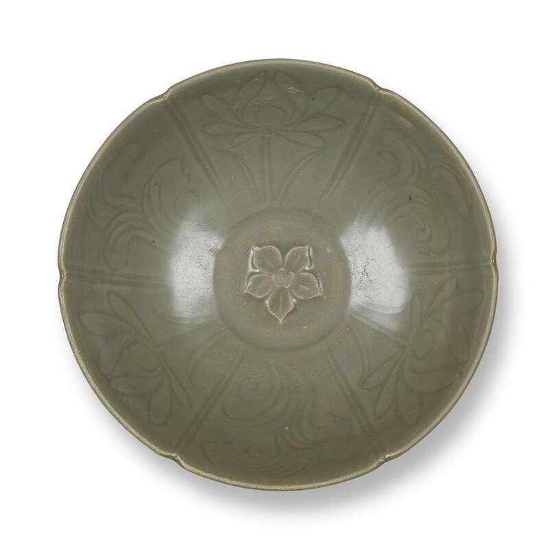 A Chinese Longquan celadon bowl with foliate rim southern song/yuan dynasty