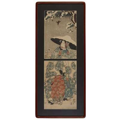 EISEN (1790-1848) AND KUNIYOSHI (1797-1861) GEISHA, AND TOKIWA GOZEN AND HER CHILDREN IN THE SNOW, TWO WORKS