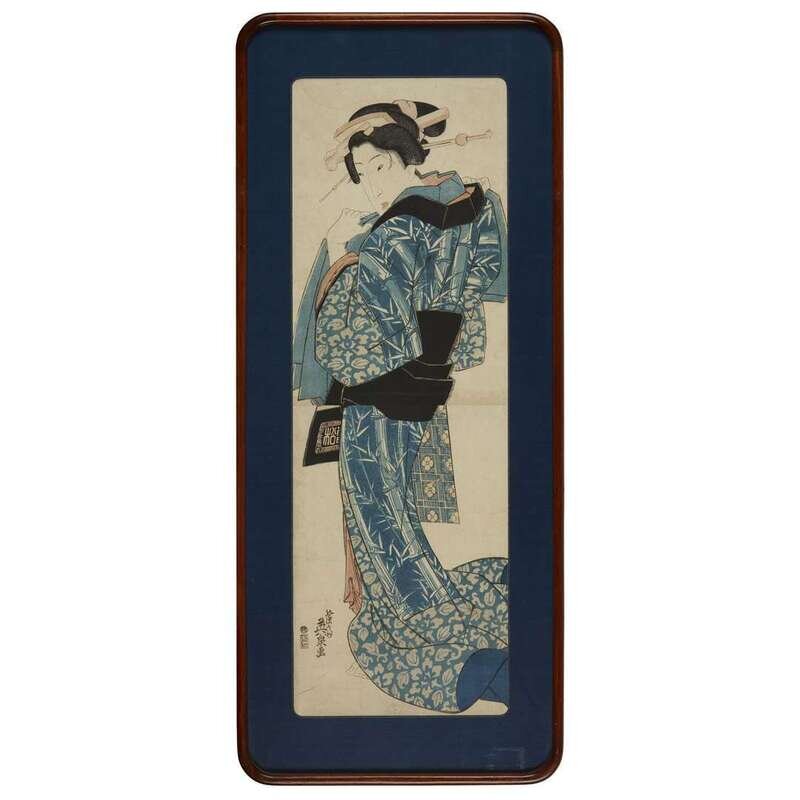 Color wood block prints, framed, matted and glazed. sight: H: 28 1/2 in., 72.4cm; W: 9 1/2in., 23.8cm