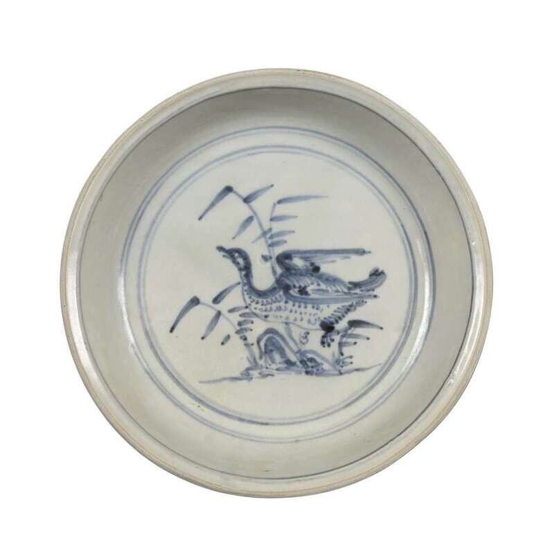 A Vietnamese blue and white circular "Duck and Bamboo" dish 16th century