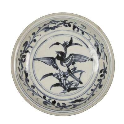 A Vietnamese blue and white "Sparrow and Bamboo" circular dish 16th century