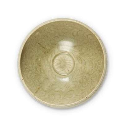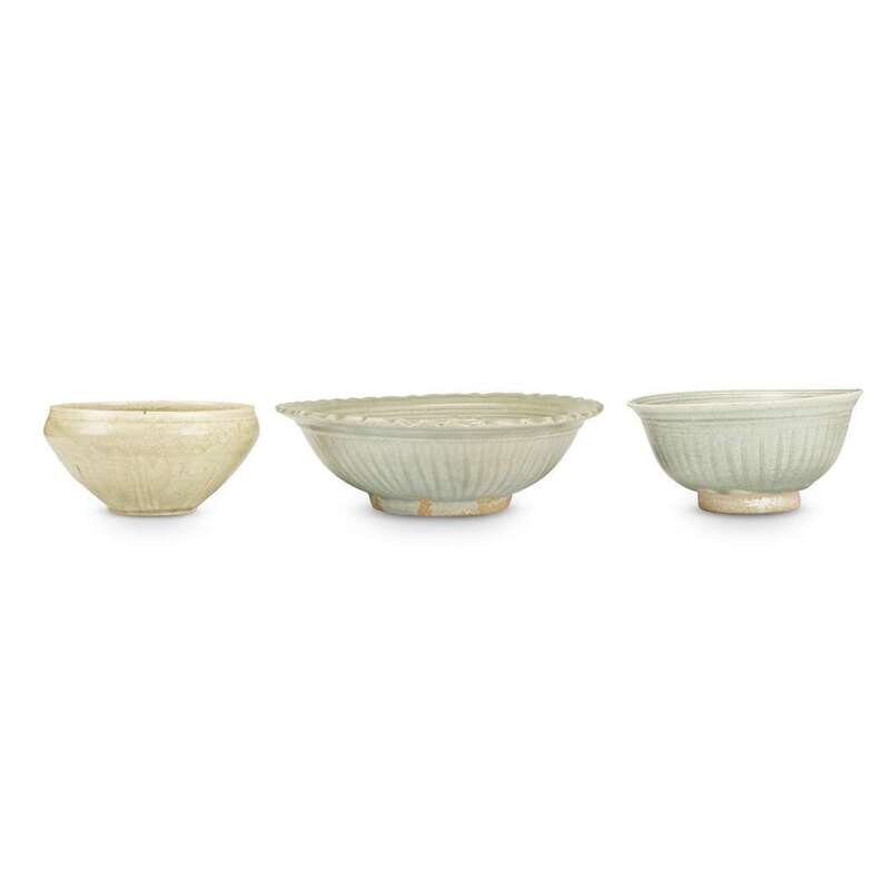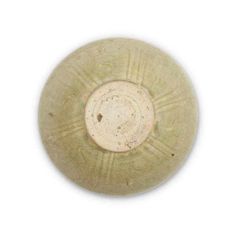 A Vietnamese incised celadon-glazed bowl, and a Thai celadon-glazed dish and a bowl the Vietnamese bowl 13th-14th century