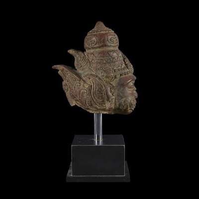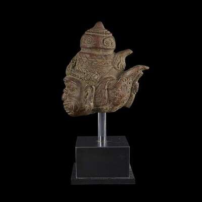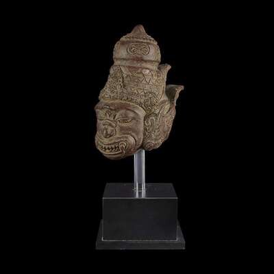 An Indonesian red pottery head of Hanuman