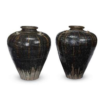 An associated pair of large brown-glazed "Martaban" jars Probably 14th/15th century