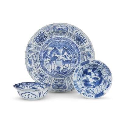 Group of three "Kraak" porcelain dishes ming dynasty, wanli period