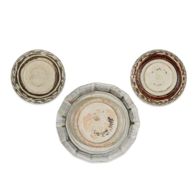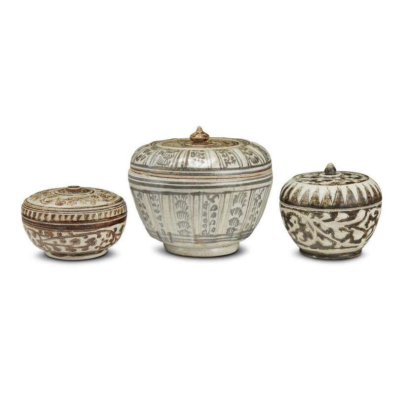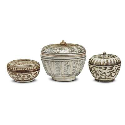 Three Thai iron-brown decorated jars and covers sawankhalok kilns, 14th-16th century