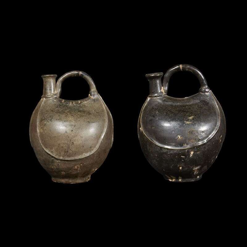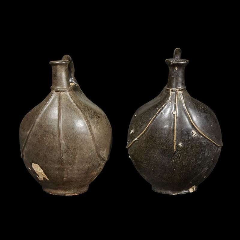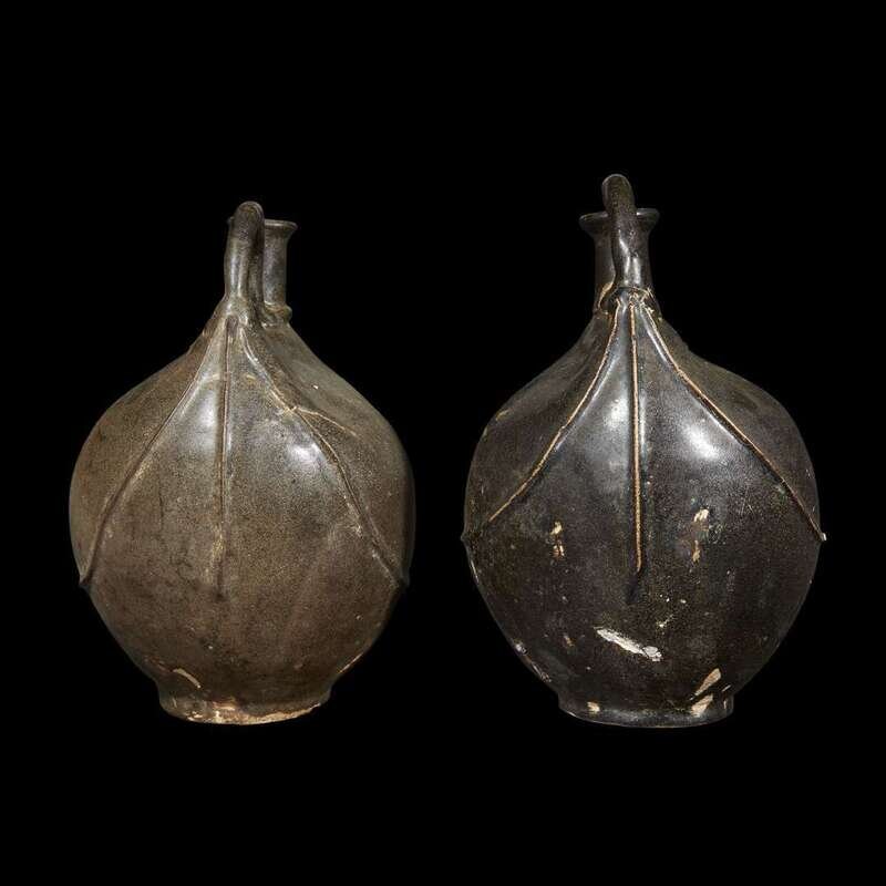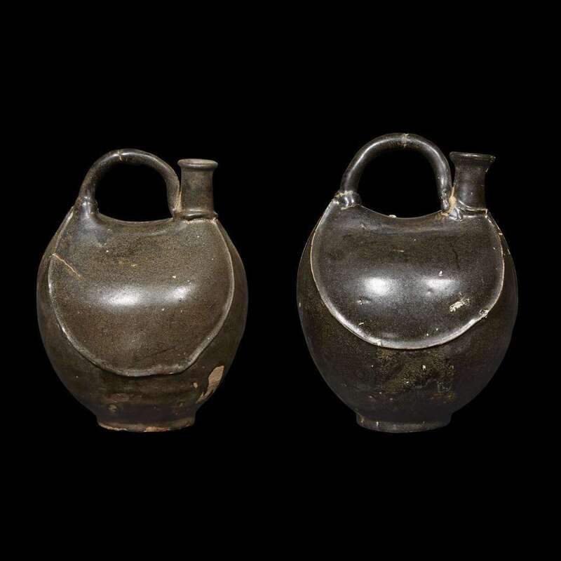A pair of Chinese black-glazed flask-form ewers Liao dynasty or later