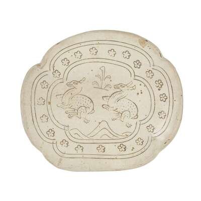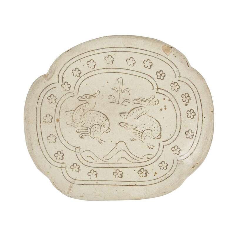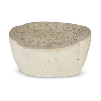 A Chinese impressed stoneware"Deer" quatralobe pillow northern song dynasty