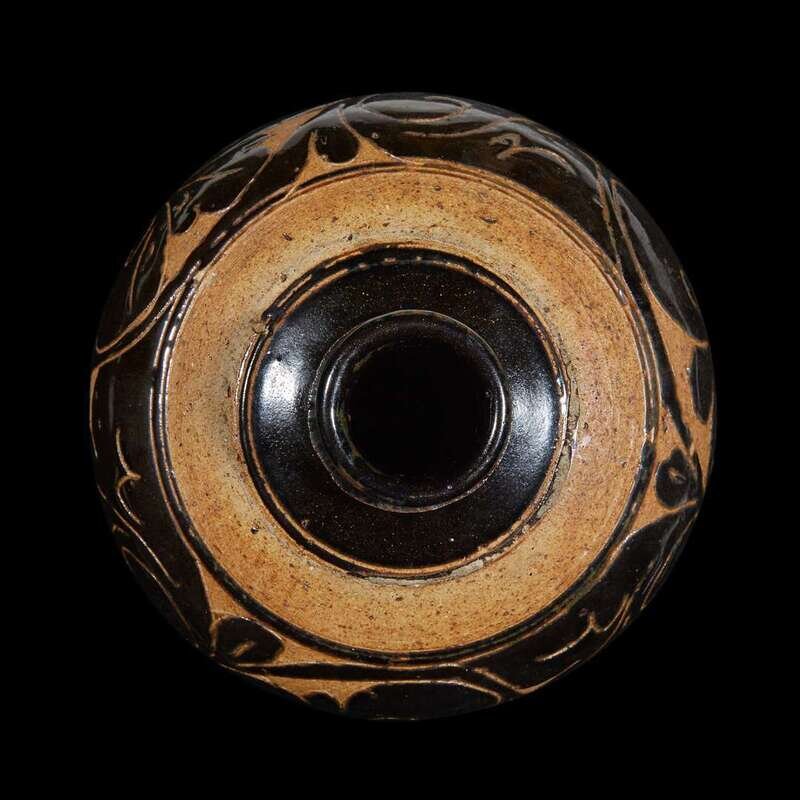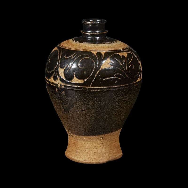 A Chinese Cizhou style carved meiping with black scrolling foliage at the shoulder