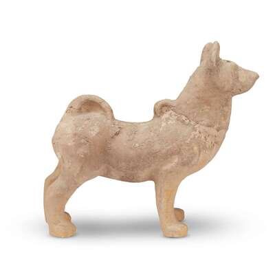 Standing foursquare with curled tail and pricked ears; Accompanied by a copy of the results of Oxford Authentication Ltd, thermoluminescence test #C102b54, dated February 7, 2002, stating that the results are consistant with the assumed dating of the figure.