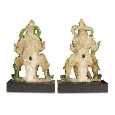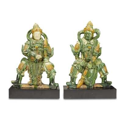 A pair of Chinese yellow and green-glazed pottery figures of "Tianwang" ming dynasty