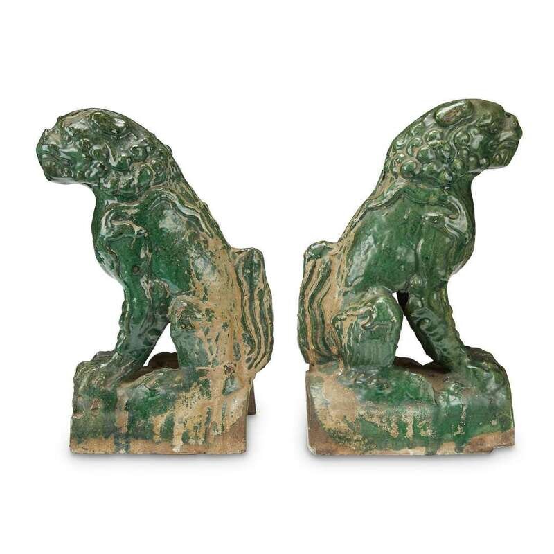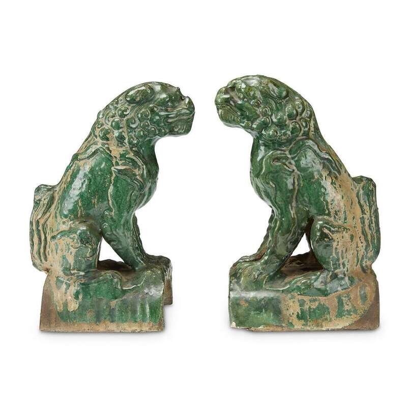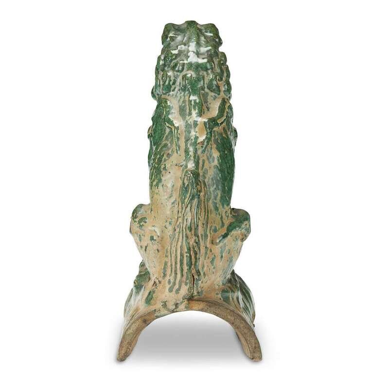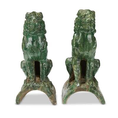 A pair of green glazed pottery "Lion" roof tiles ming dynasty