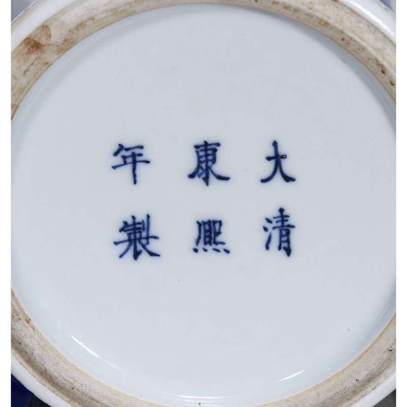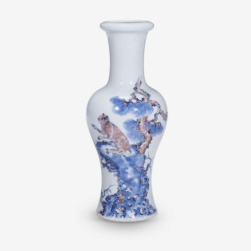 An unusual Chinese underglaze blue and copper red baluster vase kangxi six character mark