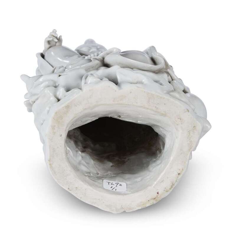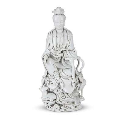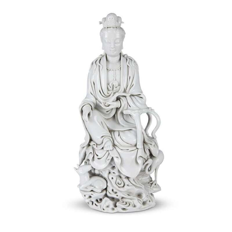 A Chinese blanc de chine figure of Guanyin seated with crane and deer