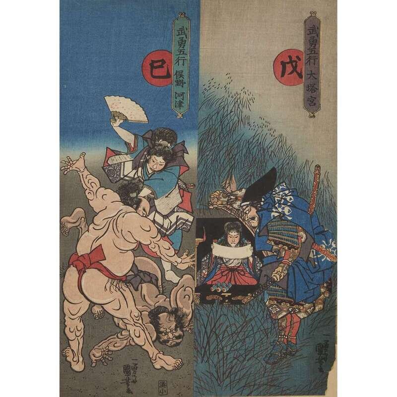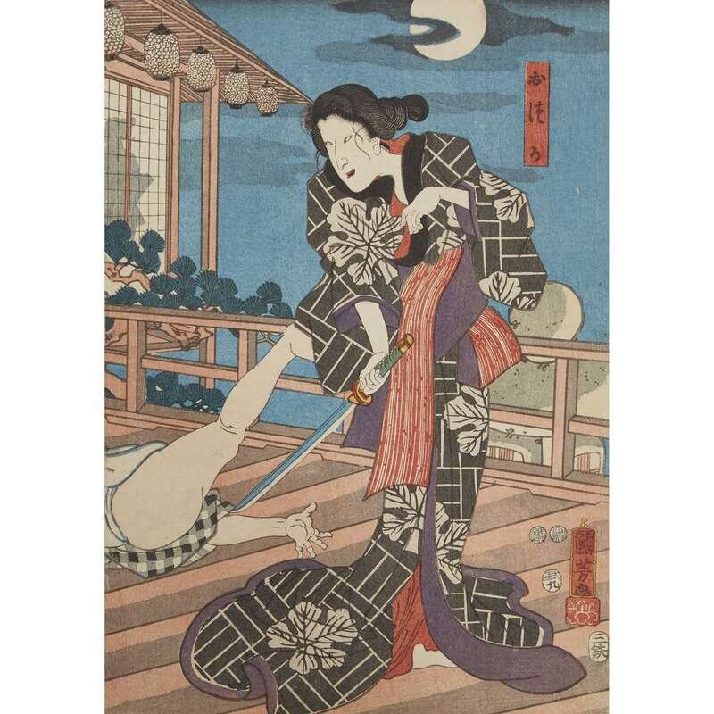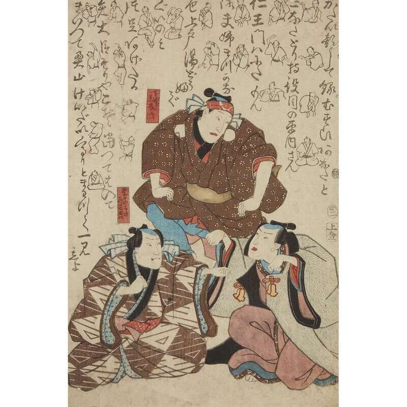 UTAGAWA KUNIYOSHI (1797-1861) GROUP OF TEN ASSORTED ACTOR PRINTS AND WOODBLOCK PRINTS
