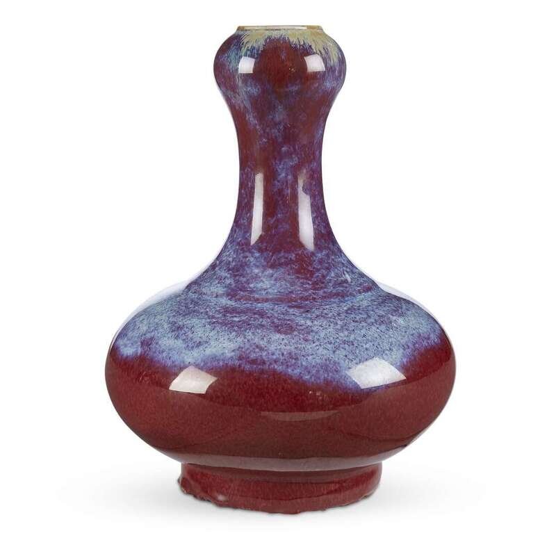 A Chinese flambe-glazed "garlic-bulb" necked vase