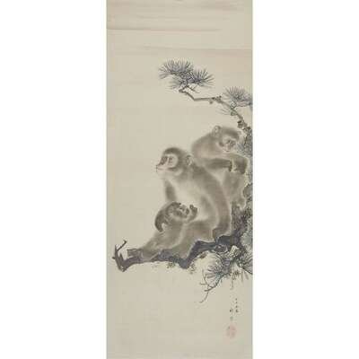 JAPANESE SCHOOL PROBABLY 19TH CENTURY THREE MONKEYS ON A PINE BRANCH