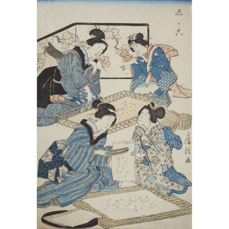 JAPANESE SCHOOL 19TH CENTURY GROUP OF EIGHT ASSORTED WOODBLOCK PRINTS
