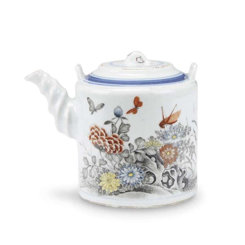 A Chinese grisaille-decorated cylindrical teapot Xuantong six-character mark and probably of the period