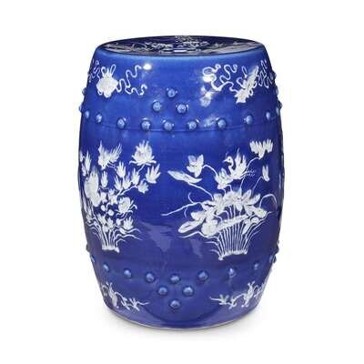 A Chinese white slip-decorated cobalt-ground barrel-form garden stool