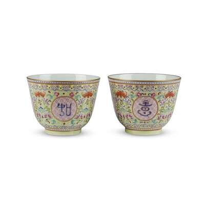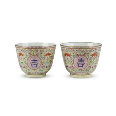A pair of famille rose-decorated porcelain cups daoguang six-character seal mark to underside