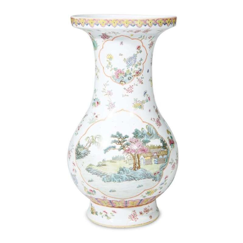 A Chinese famille rose porcelain "Landscape" vase jiaqing six-character seal mark but later