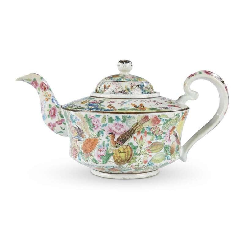 A Chinese famille rose "Birds, Flowers and Butterflies" teapot 19th century