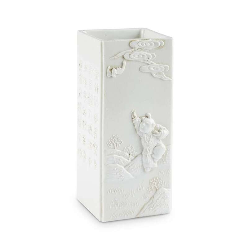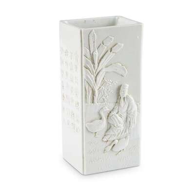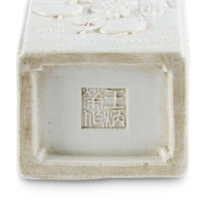 A Chinese blanc de Chine rectangular brush pot Underside bearing a molded mark "Wang Bingrong zuo"