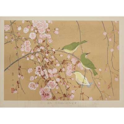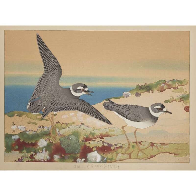 RAKUSAN TSUCHIYA (1886-1976) WEEPING CHERRY AND JAPANESE BUSH WARBLER (MID SPRING), AND PLOVERS, TWO WORKS