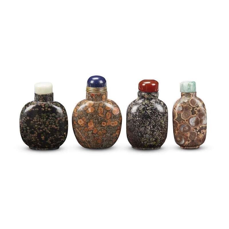 Group of four Chinese hardstone snuff bottles