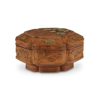 A Chinese bamboo-veneered turquoise-inlaid small hexagonal box qing dynasty, 18th/19th century