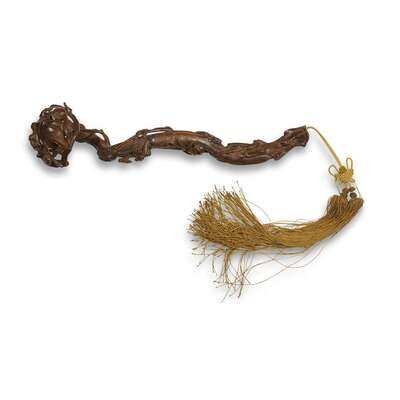 Delicatly pieced and carved with peaches and gnarled branches, yellow silk tassel.