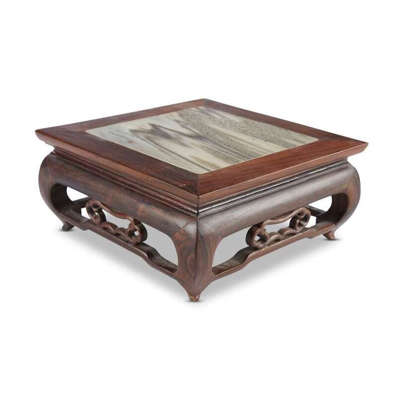 A Chinese marble-inset small hardwood stand