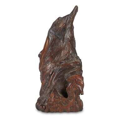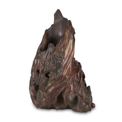 A Chinese hardwood brush pot of irregular "mountain" form, possibly huanghuali