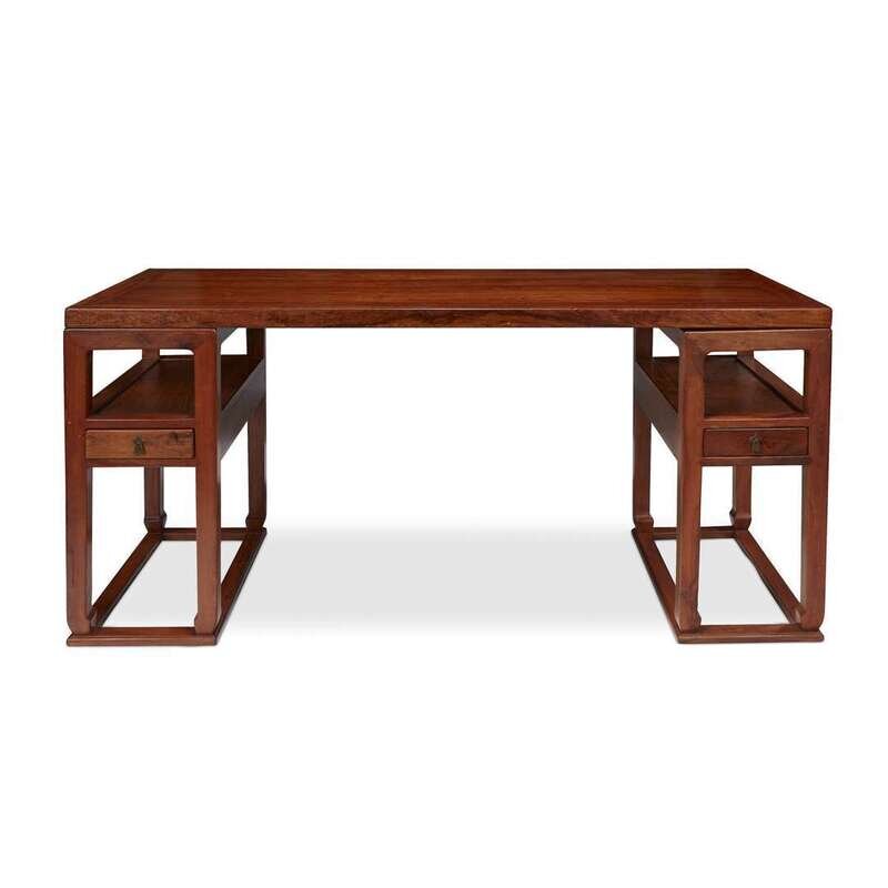 Chinese huanghuali double-pedestal painting table Qing dynasty