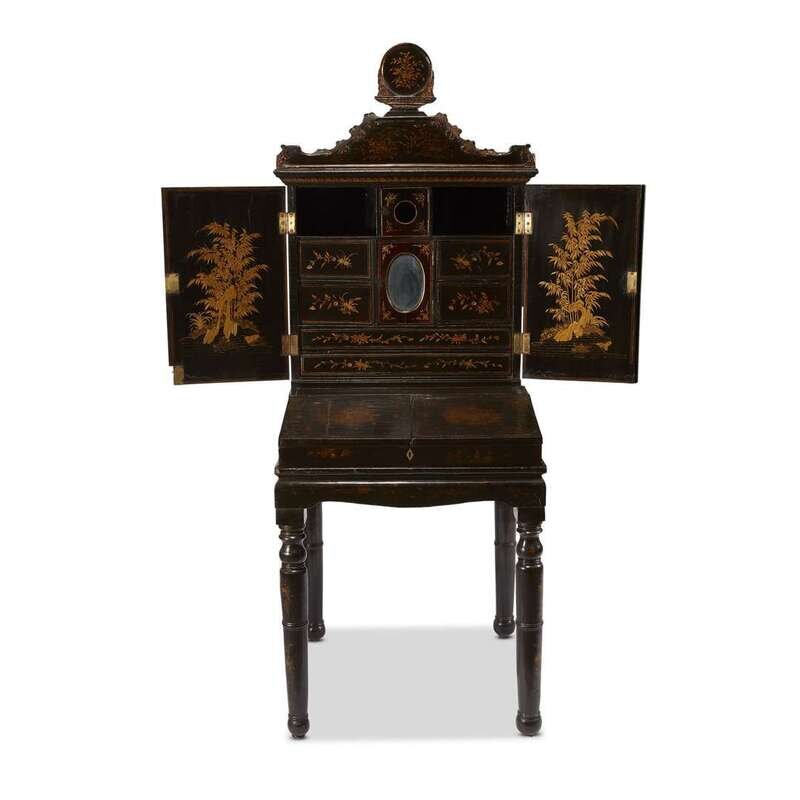 A Chinese export lacquer secretary and cabinet on associated japanned stand the lacquer circa 1825-1850,