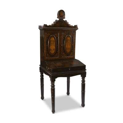 The stand probably also of the period, but made in the west The desk and separate cabinet enclosing various drawers and shelves, the stand on turned legs.