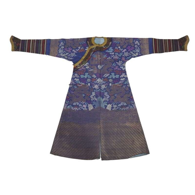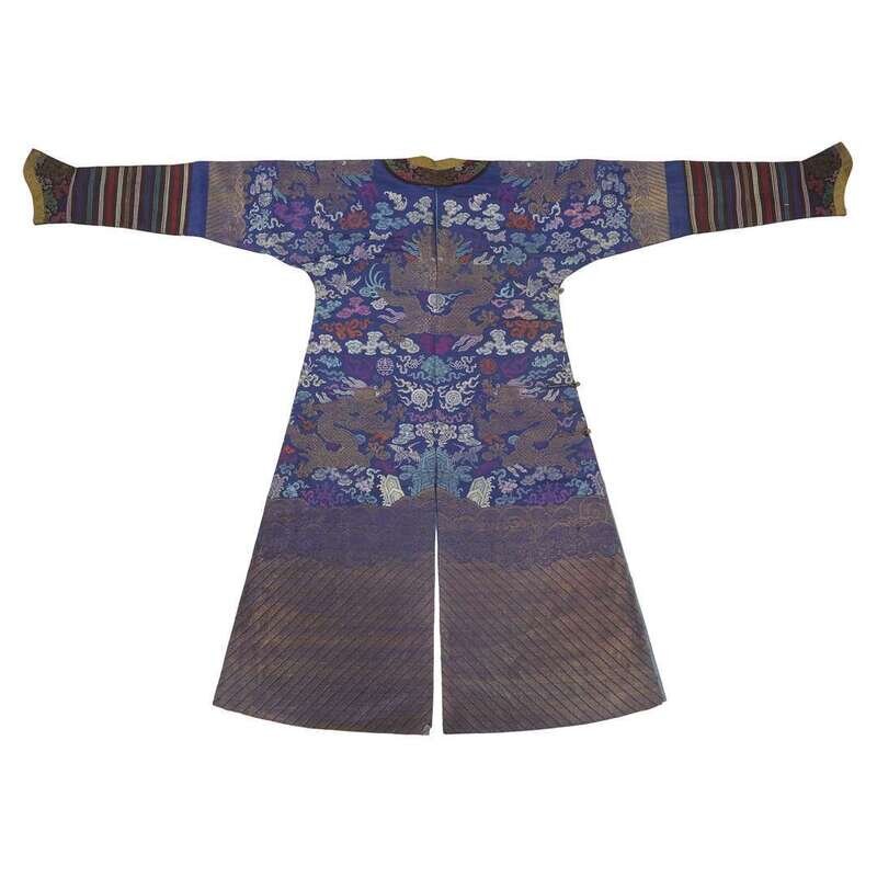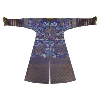 An Imperial Chinese "Nine-Dragon" blue-purple silk brocade robe 19th century