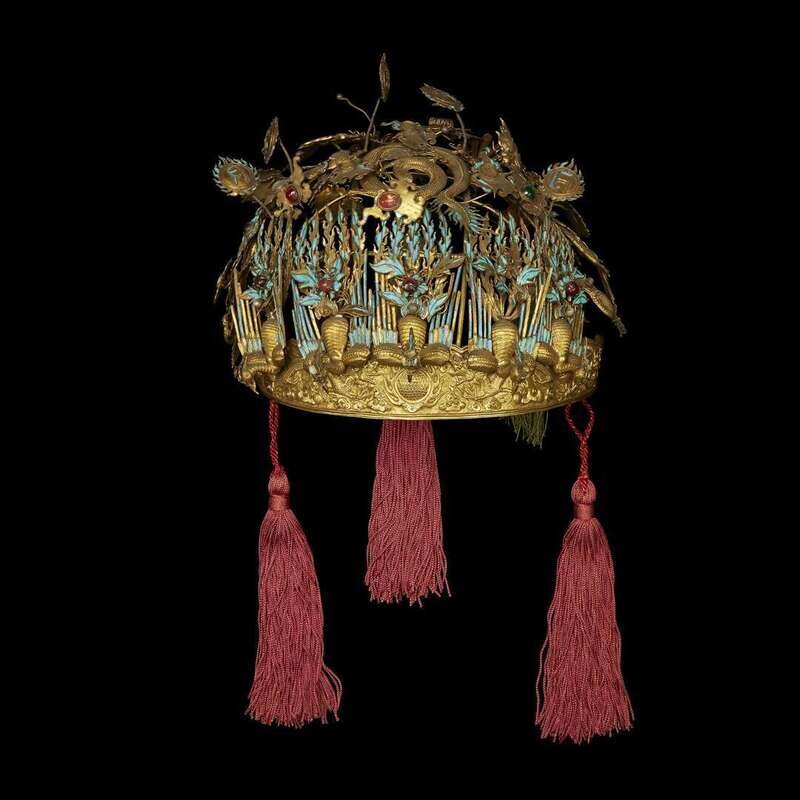 A Chinese ormolu and kingfisher court headdress 19th century