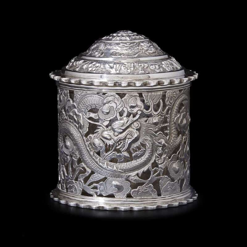 A small Chinese export reticulated silver vessel and cover wang hing, retailed by edward & sons, glasgow 1899