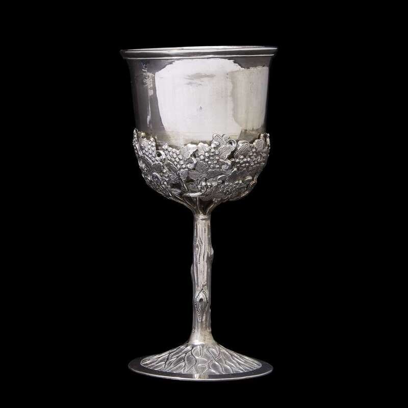 A Chinese export silver 'grape vine' small chalice leeching