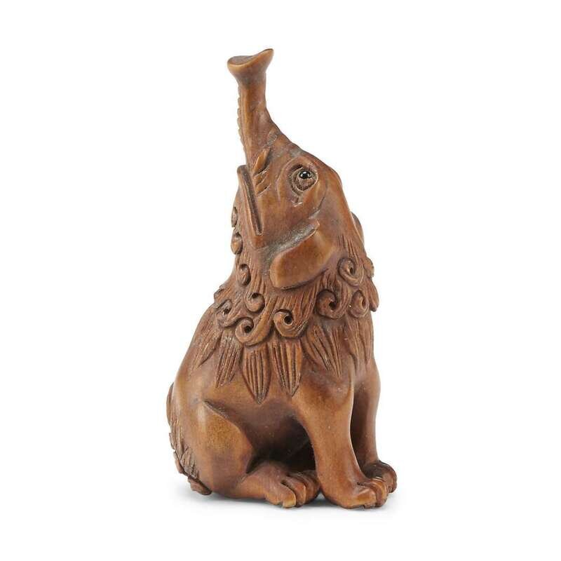 A Japanese carved wood "Baku" netsuke, signed Gyokuzan