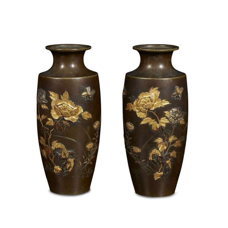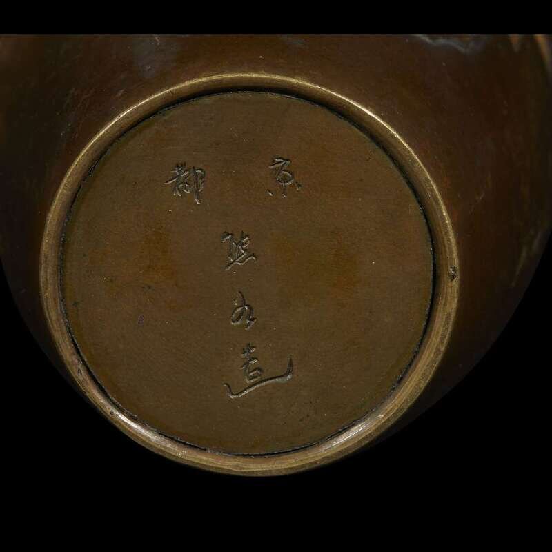 A pair of Japanese mixed metal-inlaid bronze vases signed kyoto kamagaya zo, meiji period