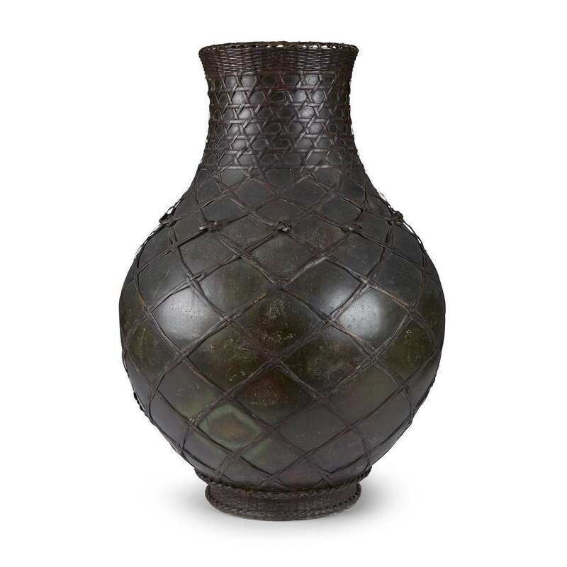 A Japanese patinated bronze vase with woven wire "wicker" exterior Late 19th/early 20th century